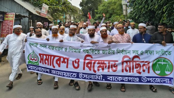 বাবুগঞ্জে জামায়াতে ইসলামী ও ইসলামী আন্দোলন বাংলাদেশ’র বিক্ষোভ সমাবেশ