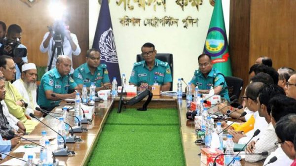 নিজস্ব প্রতিবেদক// বরিশালে শারদীয় দুর্গাপূজা উপলক্ষে আইনশৃঙ্খলা রক্ষায় নগর পুলিশের উদ্যোগে মতবিনিময় সভা অনুষ্ঠিত হয়েছে। রোববার দুপুরে শুরু হওয়া সভায় নগরীর পূজা কমিটির নেতৃস্থানীয় সদস্যদের পাশাপাশি ৪৭টি পূজা