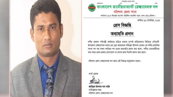 গৌরনদী উপজেলা স্বেচ্ছাসেবক দেল নেতা বহিস্কার