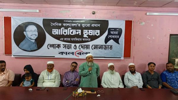 নিজস্ব প্রতিবেদক// দৈনিক কালবেলার বরিশাল ব্যুরো প্রধান আরিফিন তুষারের রুহের মাগফিরাত কামনায় শোকসভা ও দোয়া-মোনাজাত অনুষ্ঠিত হয়েছে। বুধবার (১৭ সেপ্টেম্বর) বেলা সাড়ে ১১টায় বরিশাল প্রেস ক্লাবের হলরুমে দৈনিক