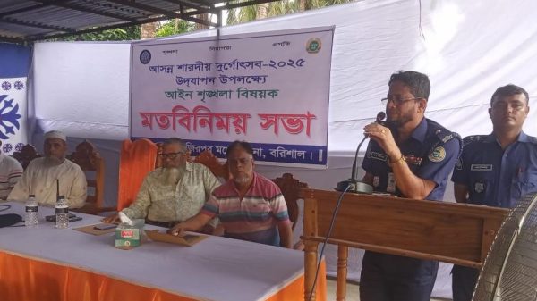 উজিরপুরে শারদীয় দুর্গোৎসব উদযাপন উপলক্ষে আইন-শৃঙ্খলা বিষয়ক মতবিনিময় সভা