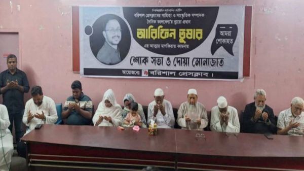 শোক সভায় আরিফিন তুষারকে স্মরণ করে কাঁদলেন সহকর্মী সাংবাদিকবৃন্দ