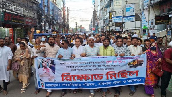 বরিশালে নুরের ওপর হামলার বিচার ও জাপা নিষিদ্ধের দাবিতে বিক্ষোভ