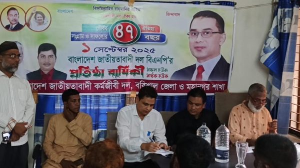 বরিশালে বিএনপির ৪৭তম প্রতিষ্ঠাবার্ষিকী উপলক্ষে কর্মজীবী দলের সভা