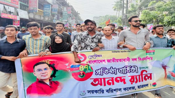 সরকারি বরিশাল কলেজ ছাত্রদলের উদ্যোগে বিএনপির ৪৭তম প্রতিষ্ঠা বার্ষিকীতে আনন্দ র‍্যালি