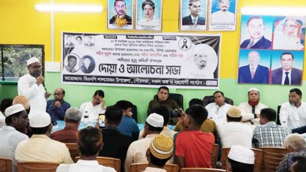লালমোহন (ভোলা) প্রতিনিধি: ভোলার লালমোহন উপজেলায় পুলিশের গুলিতে শহীদ মুকুল, আল-আমিন ও নসুর মৃত্যুবার্ষিকী উপলক্ষ্যে দোয়া ও আলোচনা সভা অনুষ্ঠিত হয়েছে। মঙ্গলবার সকালে উপজেলা, পৌরসভা বিএনপি ও অঙ্গসংগঠনের আয়োজনে দলীয়