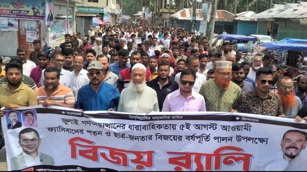 চরফ্যাশন(ভোলা) প্রতিনিধি// ভোলার চরফ্যাশনে গণঅভ্যুত্থান দিবস উপলক্ষে বিজয় র্যালি ও পথসভা করেছে উপজেলা বিএনপি ও সহযোগী সংগঠন। বুধবার (৬ আগস্ট) বিকাল সাড়ে ৫ টার দিকে কেন্দ্রীয় যুবদলের সাধারণ সম্পাদক