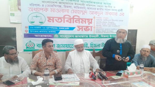 নিজস্ব প্রতিবেদক: বরিশালের হিজলায় সাংবাদিকদের সাথে মত বিনিময় করেছেন বরিশাল-৪ আসনের জামায়াতে ইসলামী প্রার্থী, জামায়াতে ইসলামীর বরিশাল জেলা আমীর, অধ্যাপক মাওলানা মোহাম্মদ আব্দুল জব্বার। এ সময় সাংবাদিক নানান