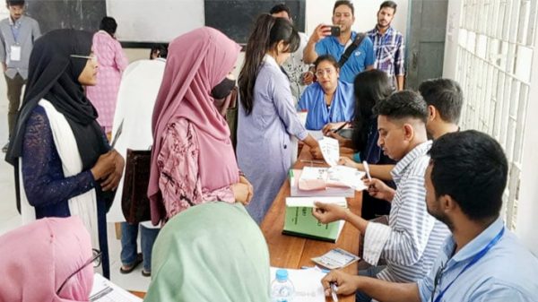 বিএম কলেজে ছাত্রদলের নেতৃত্ব বাছাইয়ে ভোট গ্রহণ শুরু