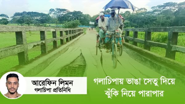 গলাচিপায় ভাঙা সেতু দিয়ে ঝুঁকি নিয়ে পারাপার