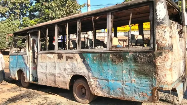 নিজস্ব প্রতিবেদক : সাভারের আশুলিয়ায় ‘গ্রামীণ পরিবহন’ নামের একটি মিনি বাসে আগুন দিয়েছে দুর্বৃত্তরা। এতে এলাকায় আতঙ্ক ছড়িয়ে পড়ে। সোমবার (১৭ নভেম্বর) ভোরে আশুলিয়ায় বেরন এলাকায় এ ঘটনা ঘটে। হঠাৎ