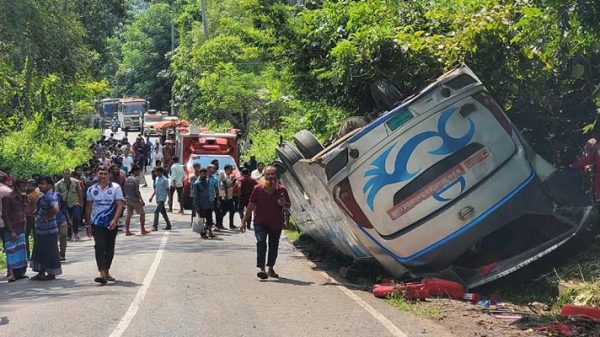 নিয়ন্ত্রণ হারিয়ে উল্টে গেল বাস, নিহত ২