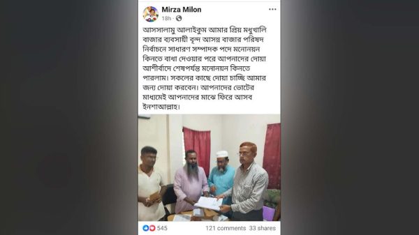 নিজস্ব প্রতিবেদক, বরিশাল: ফরিদপুরের মধুখালীতে অবস্থিত ফরিদপুর চিনিকলের শ্রমিক আলোচিত শাহ মোহাম্মদ রাজন হত্যা মামলায় যাবজ্জীবন সাজাপ্রাপ্ত আসামি মির্জা মাঝহারুল ইসলাম ওরফে মিলন কারারুদ্ধ অবস্থায় থেকে ‘মধুখালী বাজার ব্যবসায়ী পরিষদ’