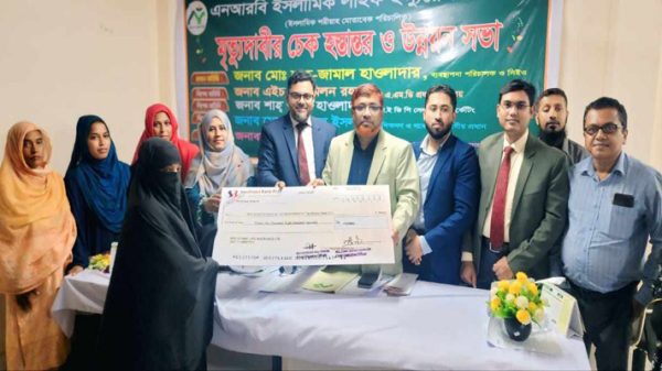 নিজস্ব প্রতিবেদক,বরিশাল// এনআরবি ইসলামিক লাইফ ইন্স্যুরেন্স লিমিটেড এর নারায়নগঞ্জ অঞ্চলের বীমা গ্রাহক মরহুম ফরহাদ হোসেনের নমিনি স্ত্রী মোছা: রোকেয়া বেগমের হাতে ৯১,৮০০/- (একানব্বই হাজার আটশত) টাকার মৃত্যুদাবী চেক ০৭