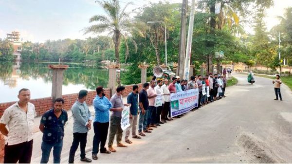 নিজস্ব প্রতিবেদক,বরিশাল: প্রাকৃতিক সৌন্দর্য নষ্ট করে বরিশাল নগরে ঐতিহ্যবাহি বেলস্ পার্ক সংলগ্ন ডিসিলেকে প্রাচীর নির্মাণের কাজ বন্ধের দাবিতে মানববন্ধন করেছে নাগরিকরা। শনিবার (১৯ সেপ্টেম্বর) বিকেল ৫ টার দিকে